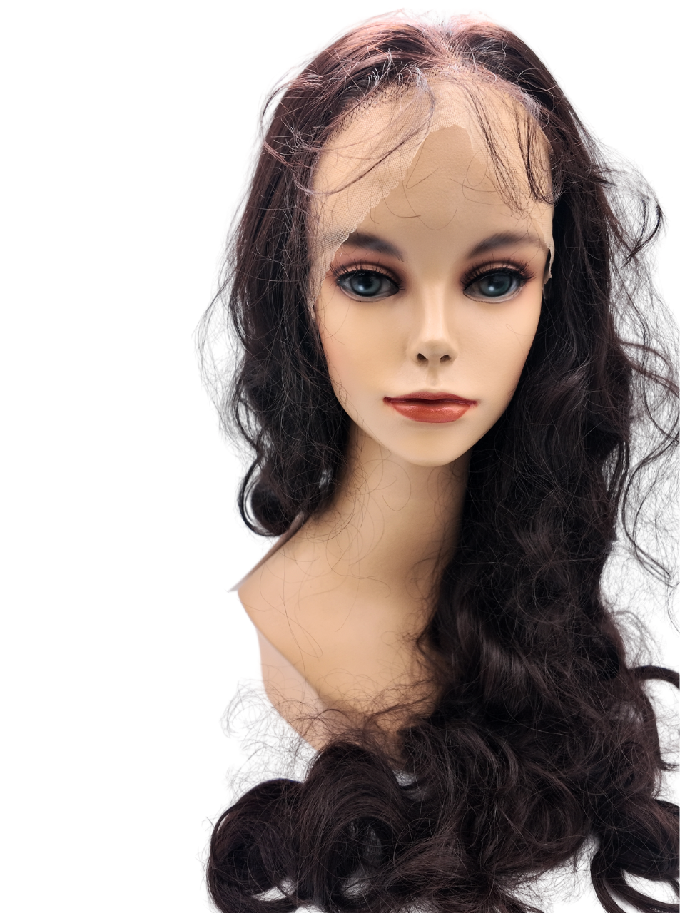 In order to find the right size wig, measure the circumference of your head from the front hairline, behind your ear, to the nape of your neck, to your other ear and then back to the front hairline.