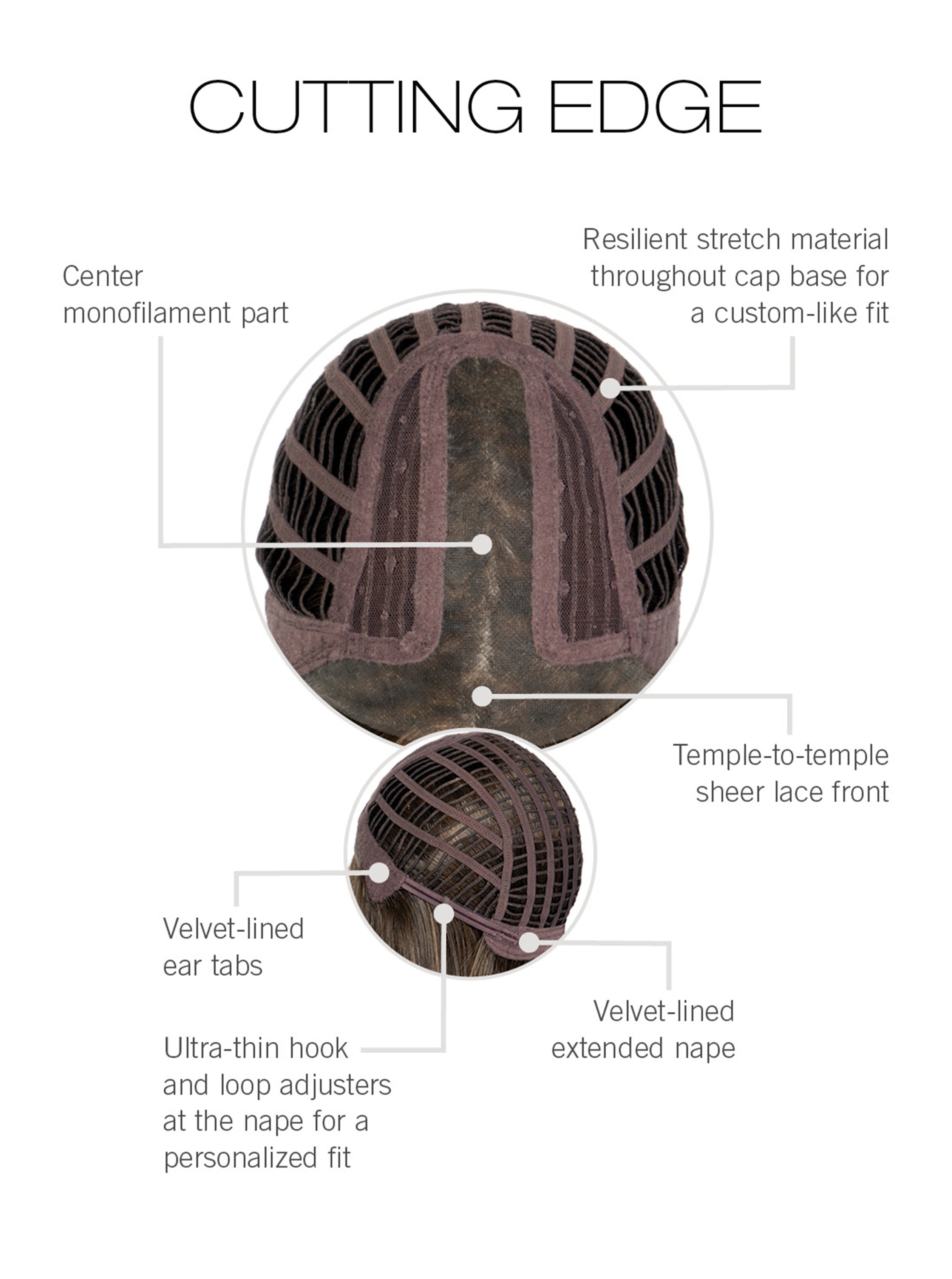 CAP CONSTRUCTION - Personal Fit Cap ,Temple-To-Temple Sheer Lace Front ,Monofilament Part