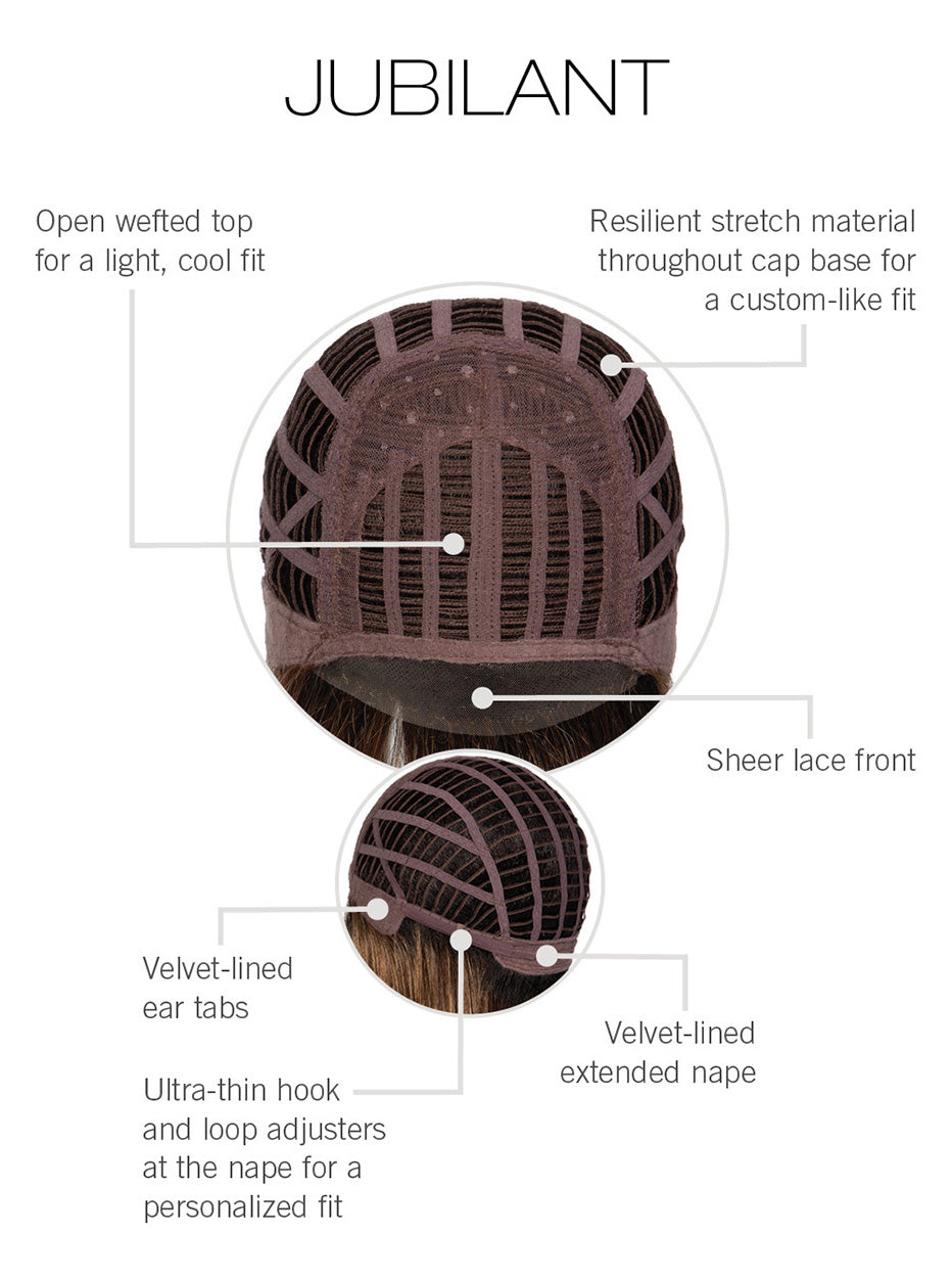 Jubilant by the Gabor Luxury Winter 2026 Collection features sleek, thoughtfully placed layers that create a polished and flattering shape with timeless, everyday appeal. Designed with a lace front and open wefted top for a natural look and breathable comfort, this style is finished with velvet-lined ear tabs and an extended velvet-lined nape for a secure, soft fit. Crafted with Kanekalon Flexlite® fiber, Jubilant offers smooth movement, lasting shape, and lightweight comfort in an average cap size, making it a modern yet classic choice for effortless daily wear.